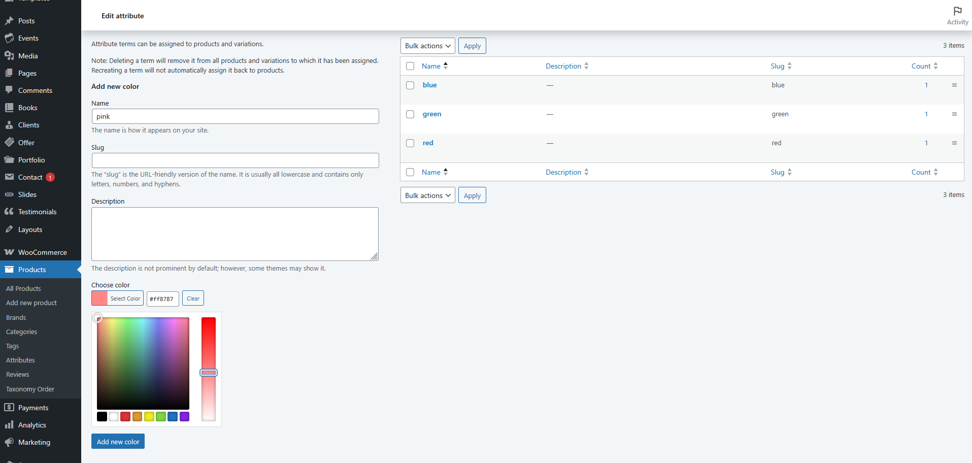 - Przejdź do Produkty > Atrybuty.